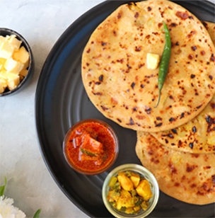 A classic Indian flatbread filled with savory potato and spices. Perfect for breakfast, lunch or a quick snack. Aloo paratha served with curd or pickle or chutney.