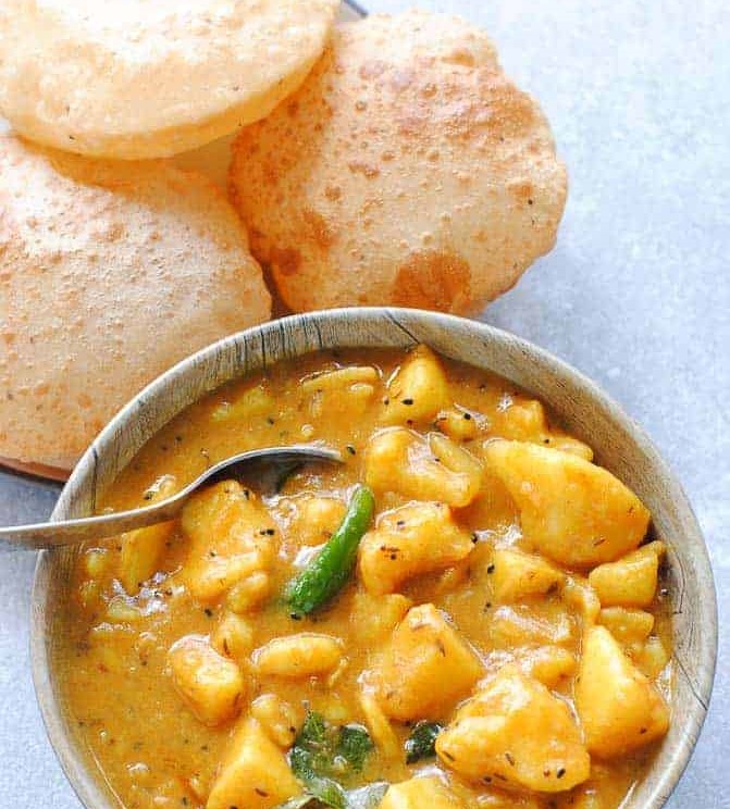 Aloo Puri is a popular and delectable Indian dish that combines spicy, flavorful potato curry (aloo) with puffed, deep-fried bread (puri).