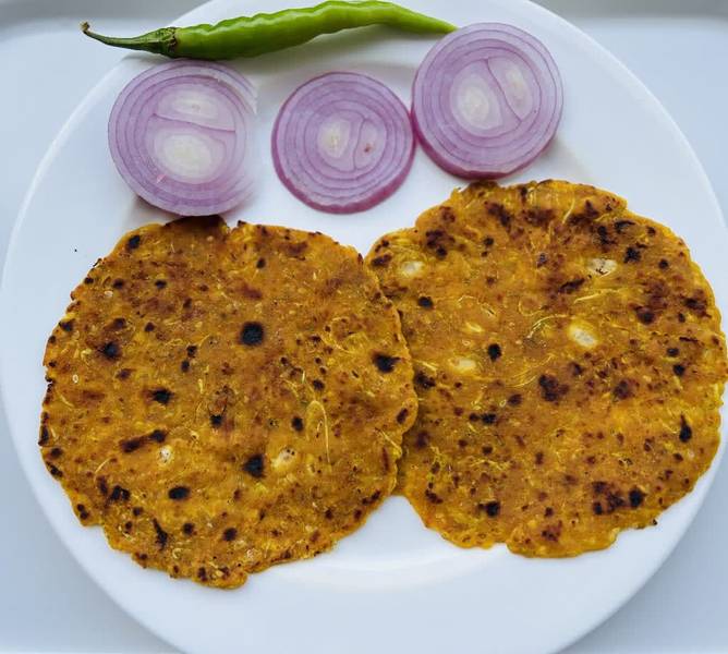Thepla is often multigrain, usually made with whole wheat flour with the addition of chickpea and millet flour.